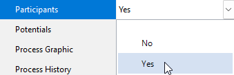 6. Open the Configuration tab to see all the contents of the report.Here you can specify which properties should appear in the report. To do this, click in the respective field and select Yes or No.